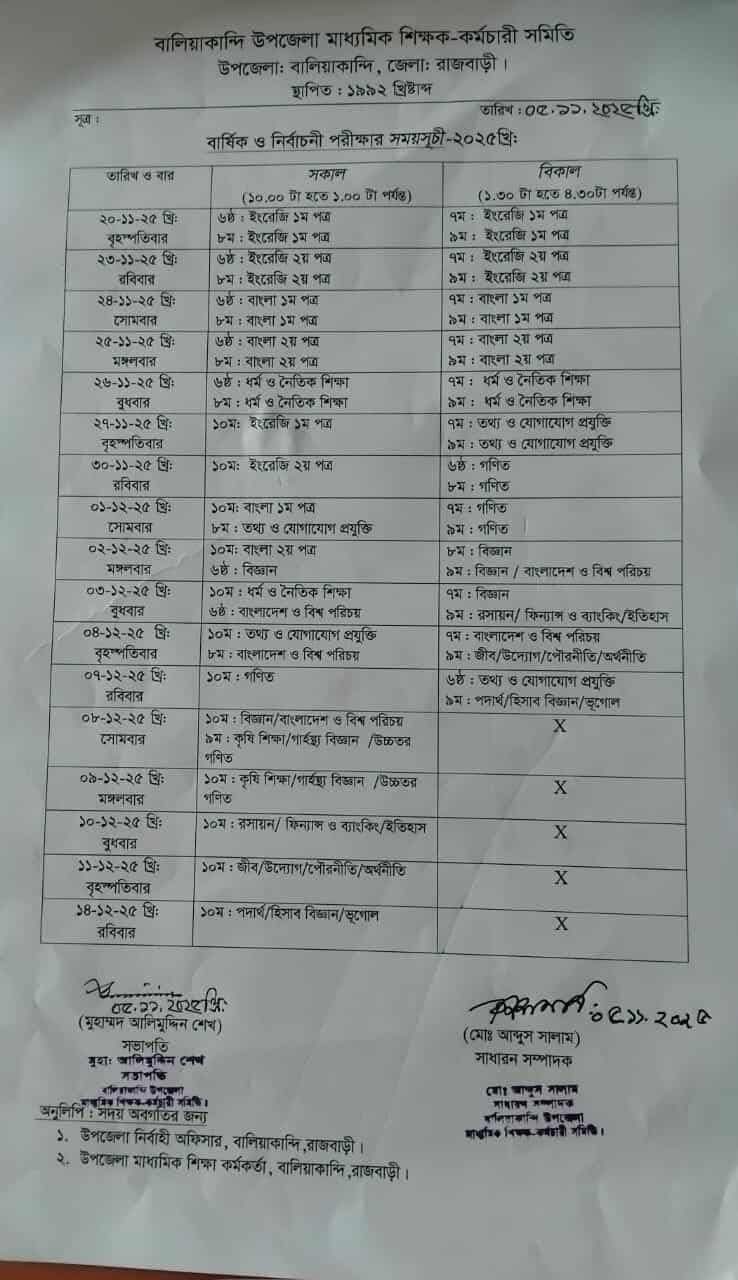 এস.এস.সি নির্বাচনি ও বার্ষিক পরিক্ষা- ২০২৫ এর সময়সূচি
